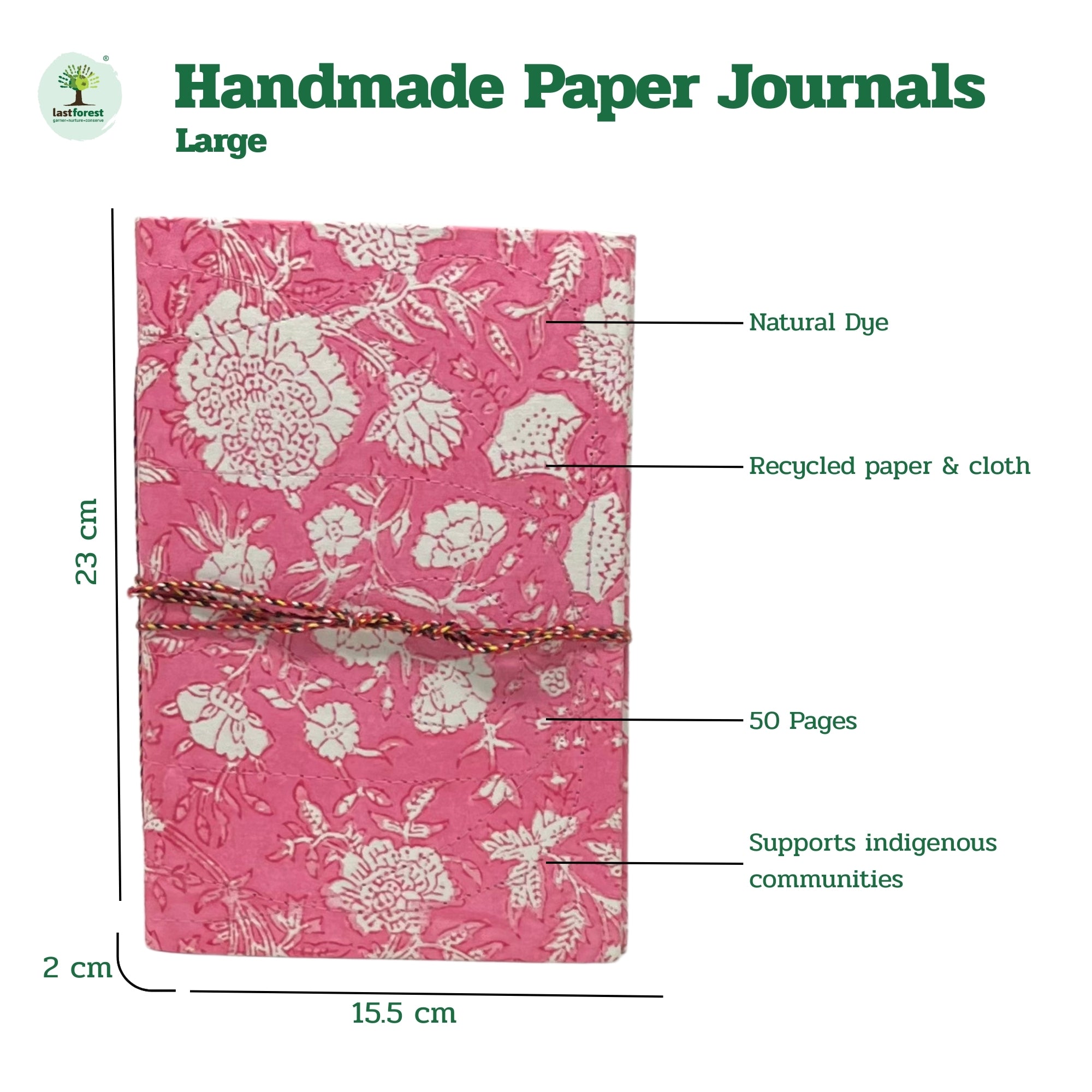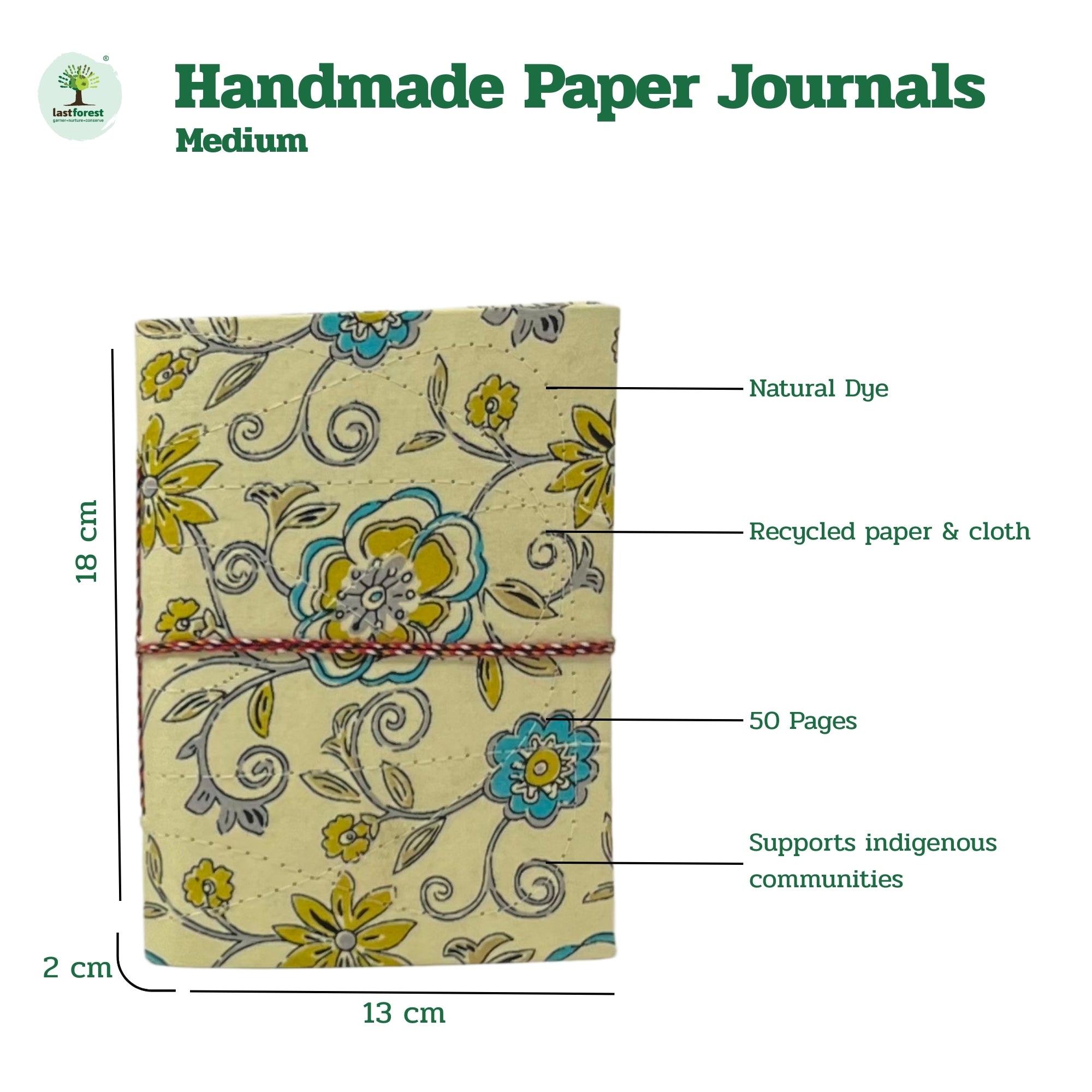 Thoughtfully crafted from recycled paper and cloth, this handmade journal is a meaningful blend of sustainability and artistry. Its naturally textured pages offer a warm, organic feel - perfect for writing, sketching, journaling, or planning your day with intention.