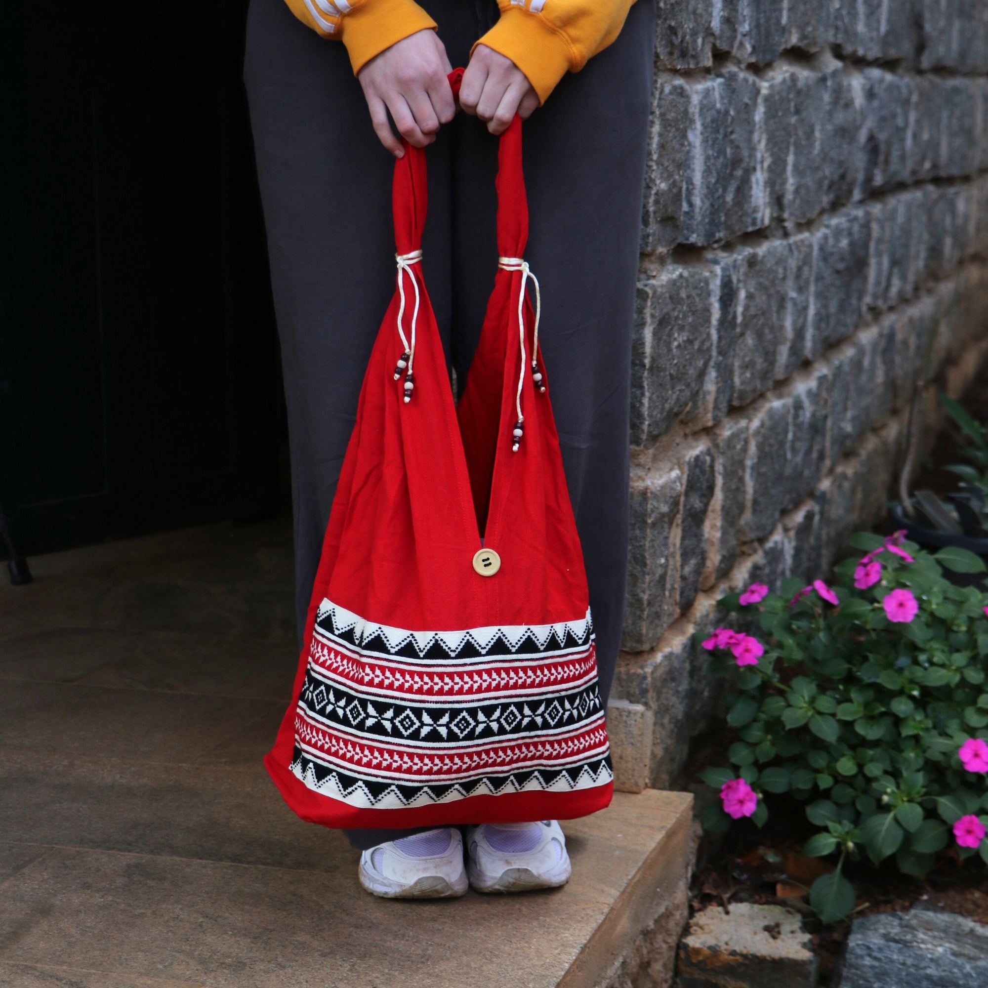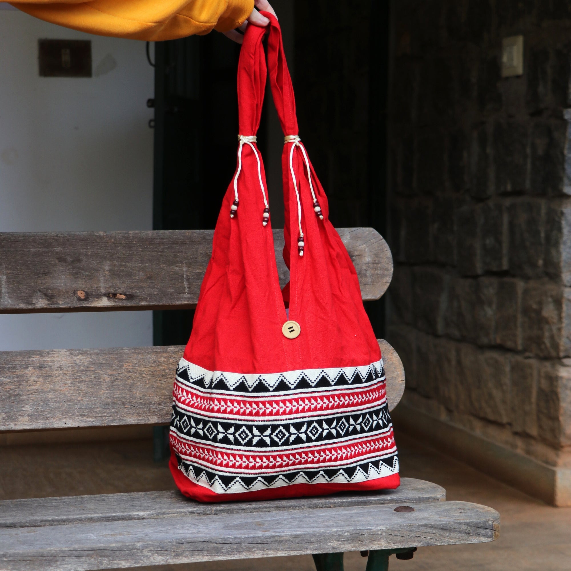 Elevate your everyday carry with the elegance of the Nilgiris. The Toda Work Bag features authentic hand embroidery by the Toda community-crafted with bold geometric motifs and meticulous needlework. Each pattern is stitched individually, making every bag a one-of-a-kind expression of heritage and artistry.