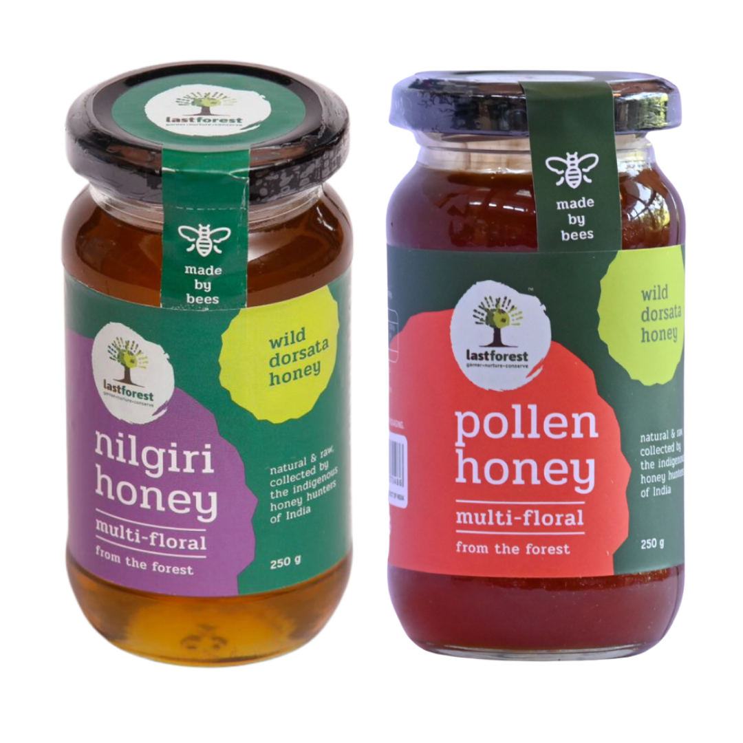 Raw, Unprocessed Honey from the forest - Nilgiri & Pollen Honey Combo