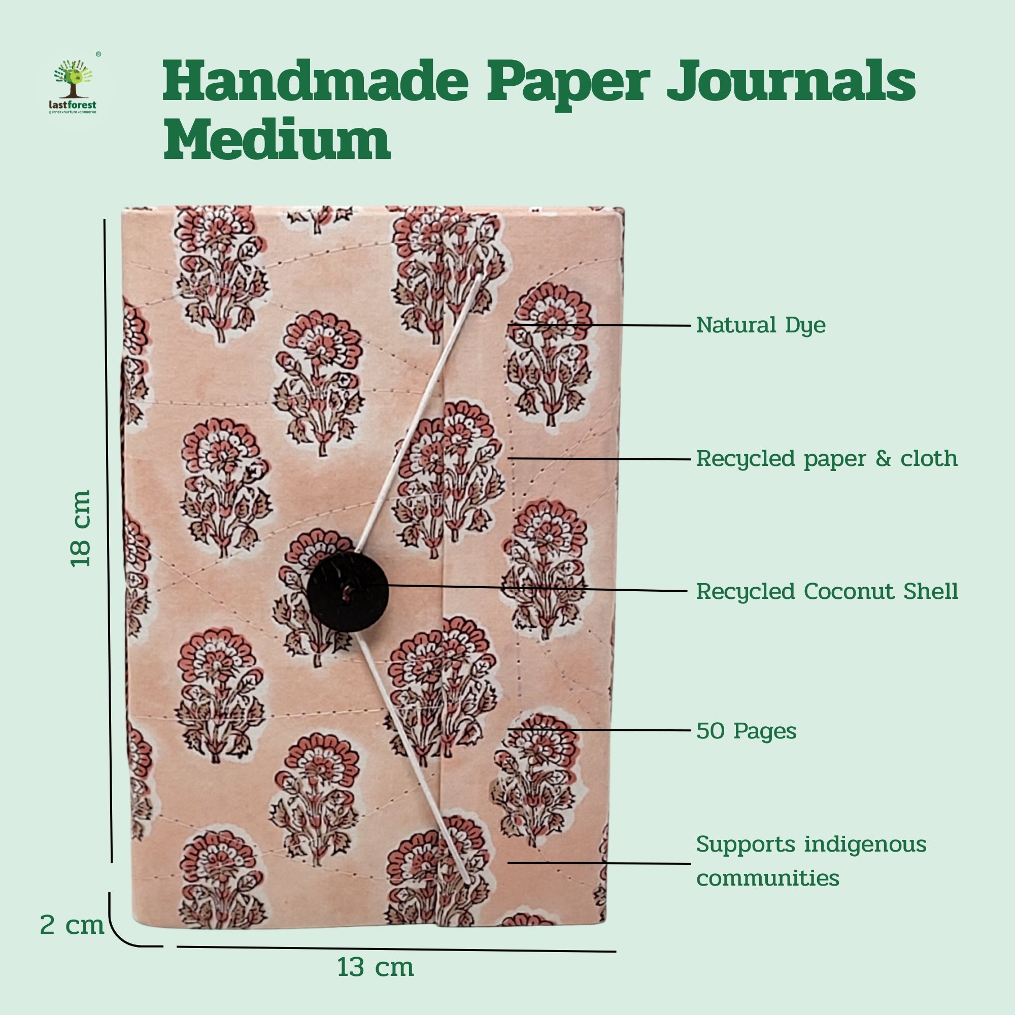 Thoughtfully crafted from recycled paper and cloth, this handmade journal is a meaningful blend of sustainability and artistry. Its naturally textured pages offer a warm, organic feel - perfect for writing, sketching, journaling, or planning your day with intention.